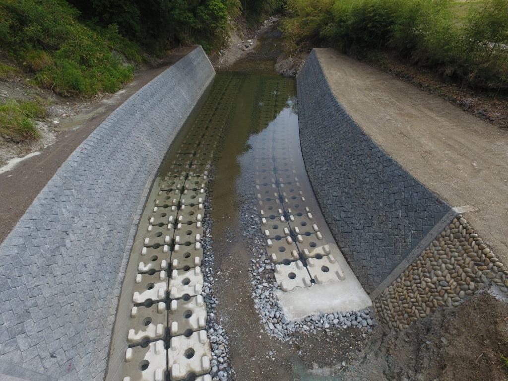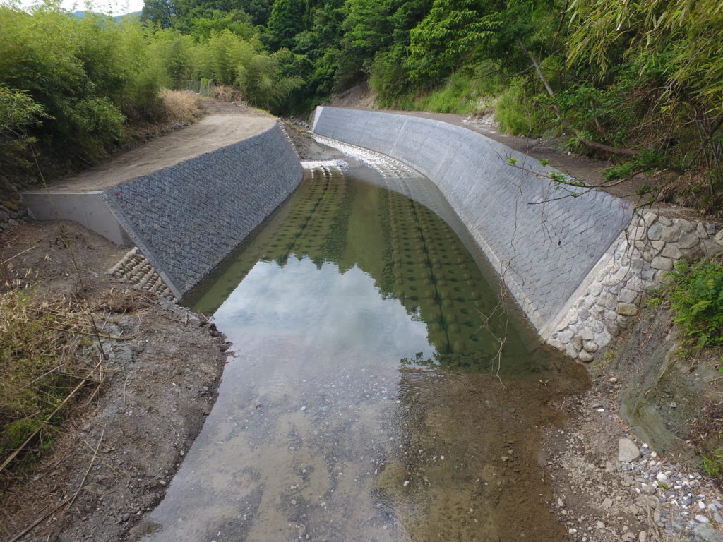 一昨年の豪雨により河川の練ブロック積みが崩壊した為、復旧工事を行いました。 雨季等があり長期にわたる工事でしたが無事完了することが出来ました。 工事関係者の皆様ご協力ありがとうございました。