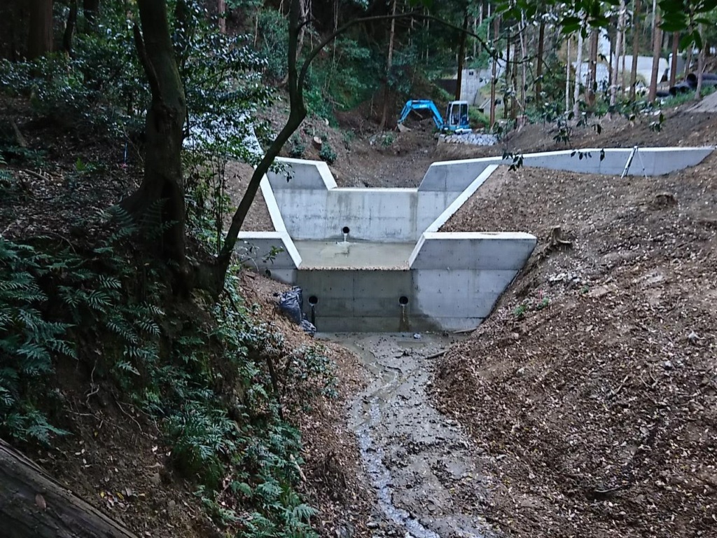 9月中旬より施行。下請業者さんの協力のもと、谷止工、副堤工を順調に進めています!